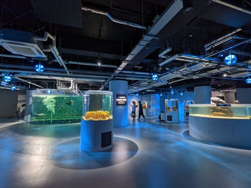 訪問日:2022年8月13日 ザ最近風水族館 別にムードある雰囲気とかは求めてないけど着いた頃には日が沈んでるわけ。 入ってまずコレのキラッキラ雰囲気。 陰キャにはつらいぜ。 色の特徴や形状に特化した魚の解説パネル。 いくつかのテーマごとのエリア分けが…